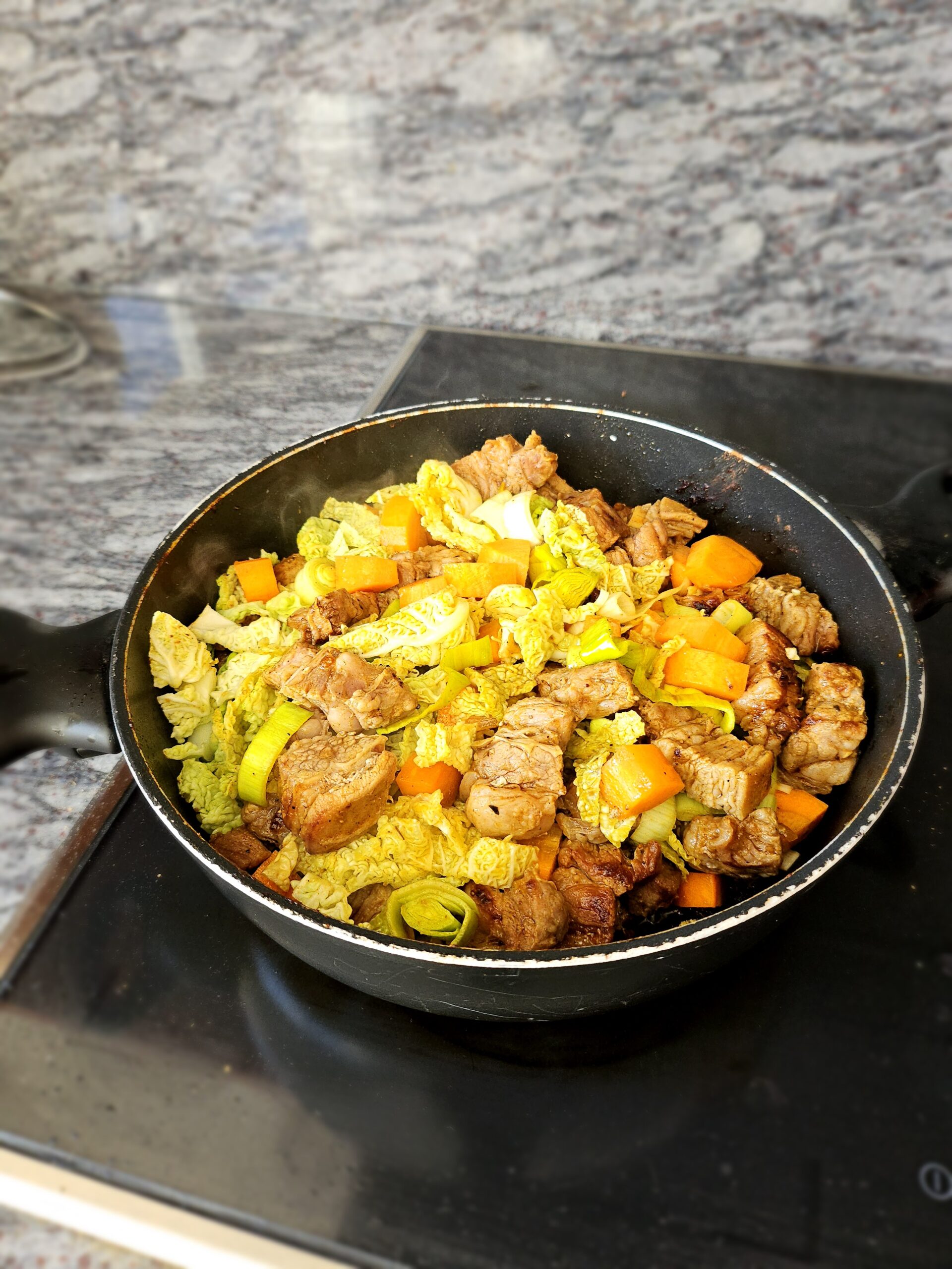 - Mit Mehl bestäuben und mit anbraten