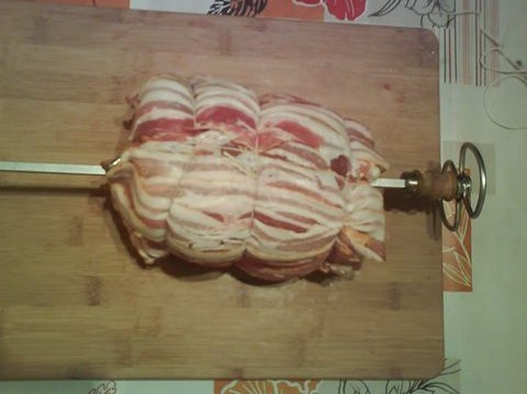 - Original müsste der Braten noch mit Bratspeck ummantelt werden.