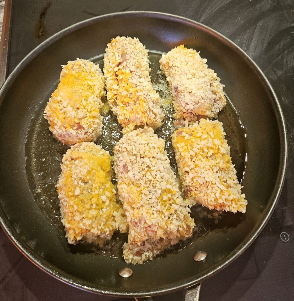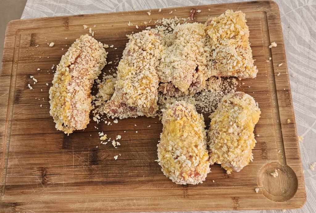- Panierstrasse: Mehl, Eier, Paniermehl